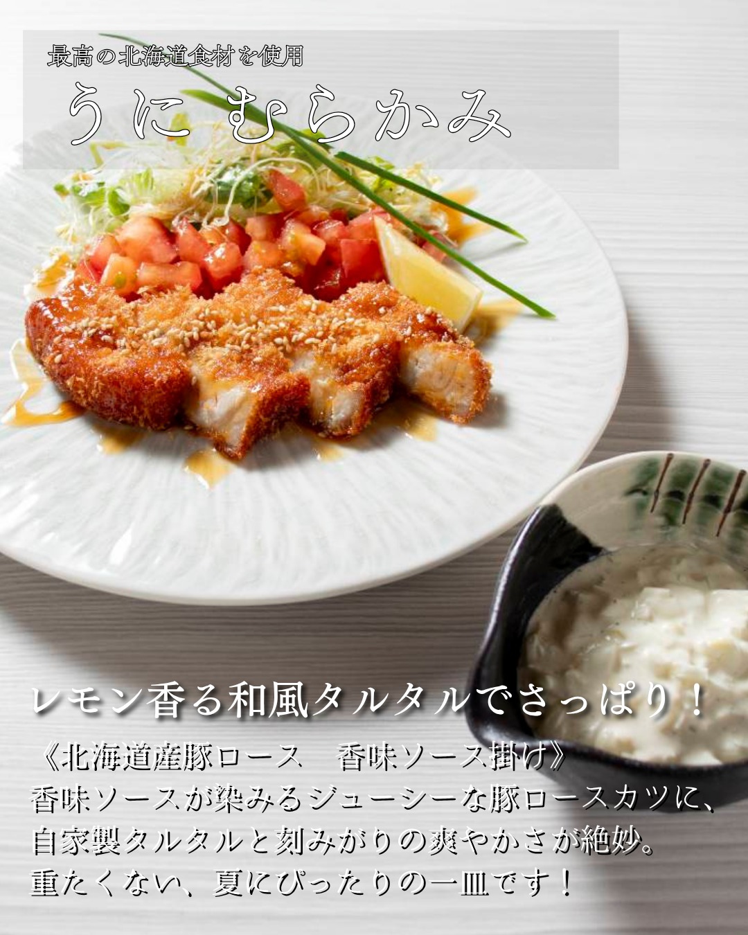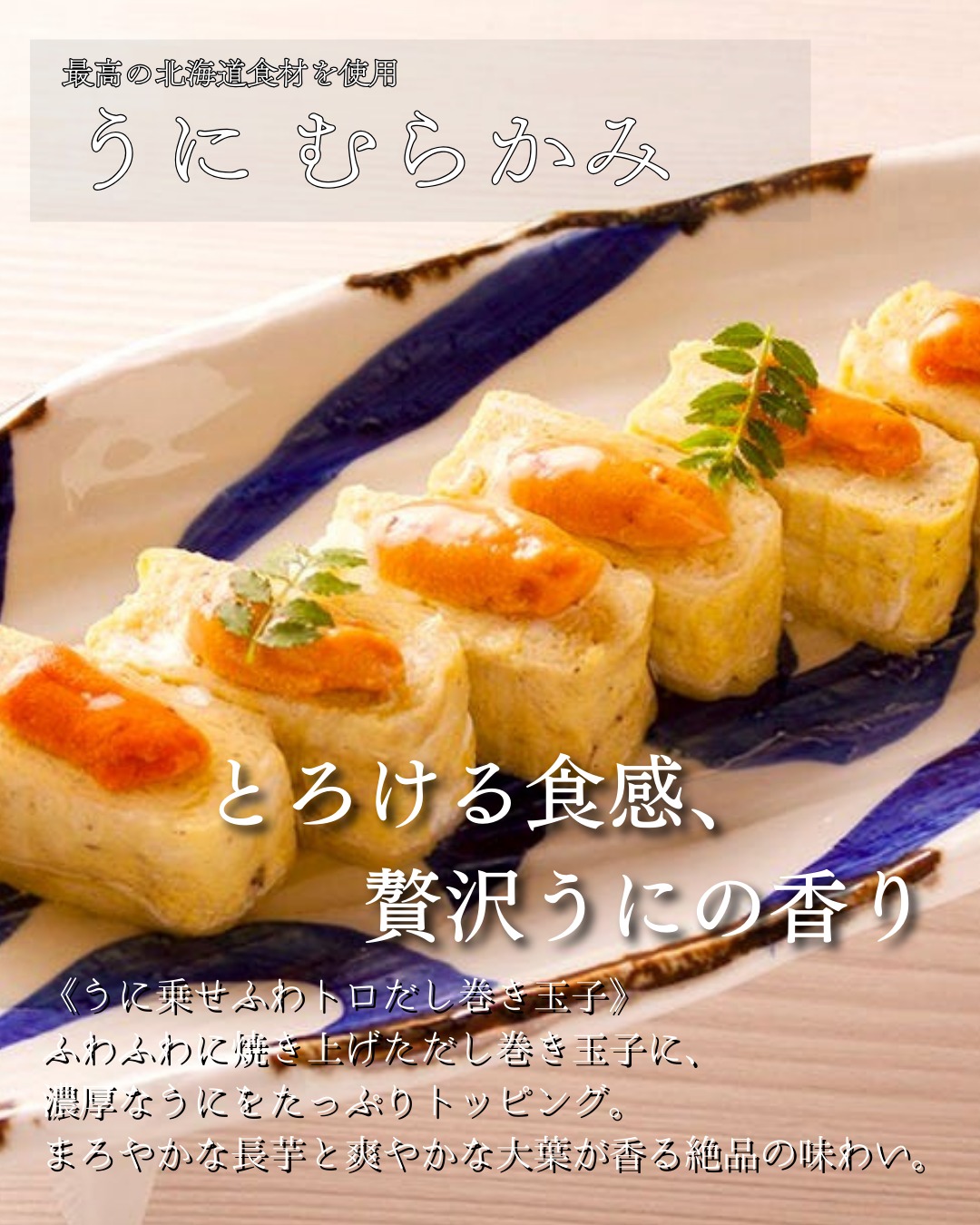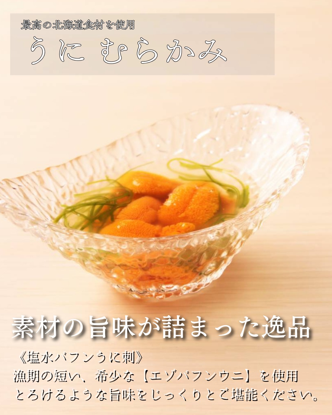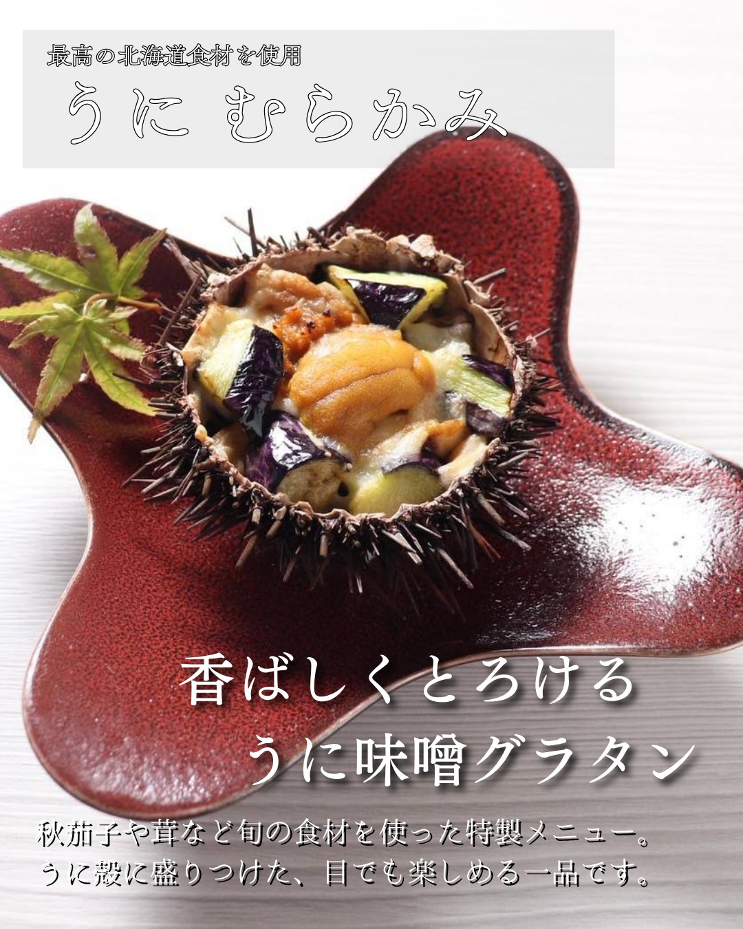 無添加生うにの美味しさはそのままにお肉・野菜などの北海道食材を新しいむらかみスタイルでご提供いたします
