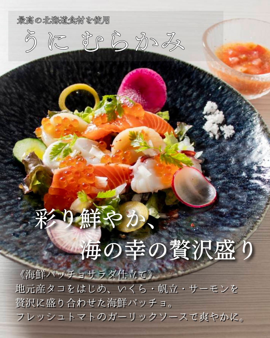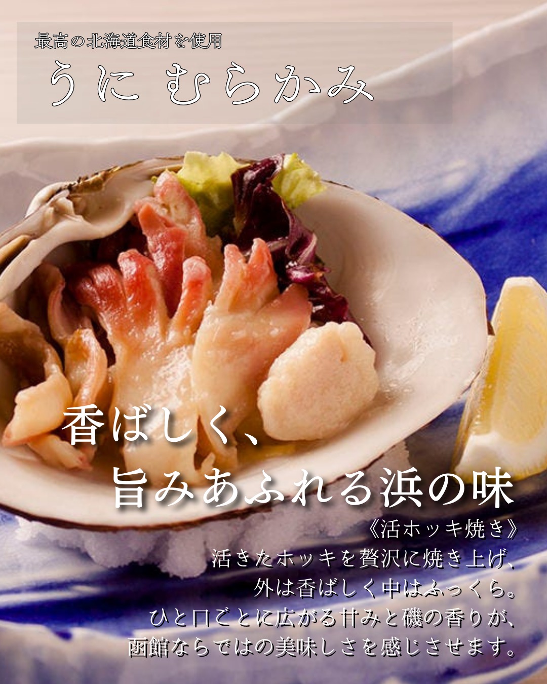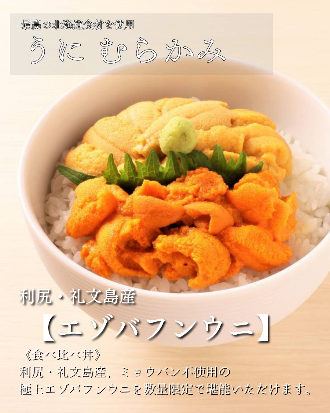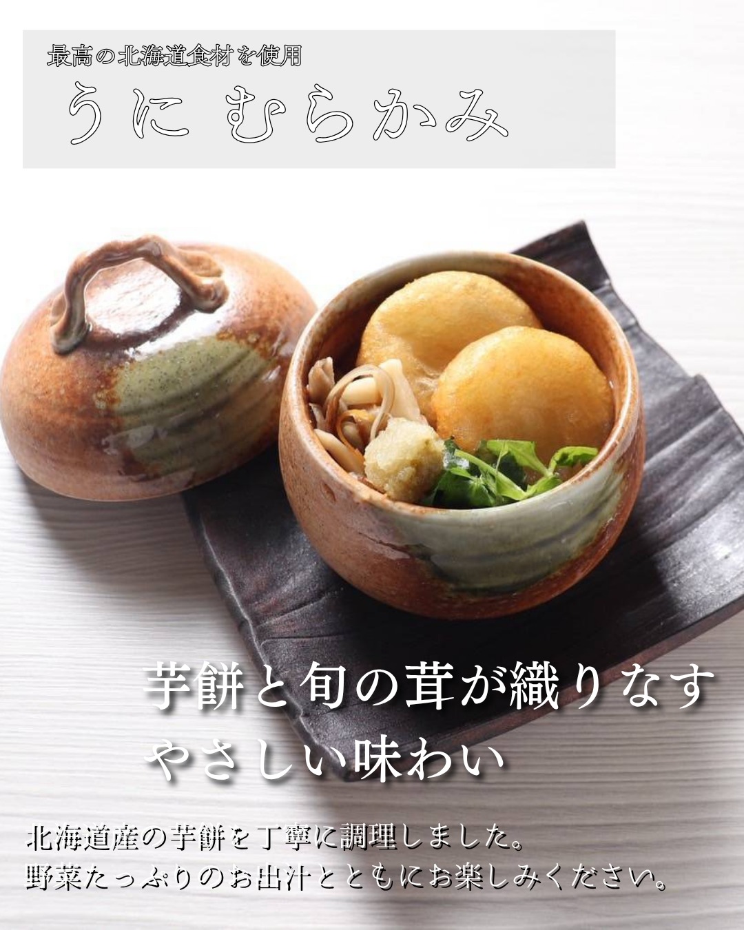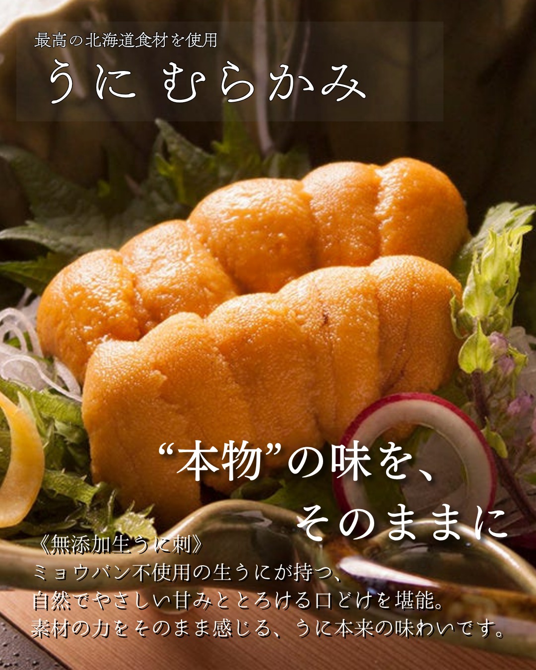 無添加生うにの美味しさはそのままにお肉・野菜などの北海道食材を新しいむらかみスタイルでご提供いたします